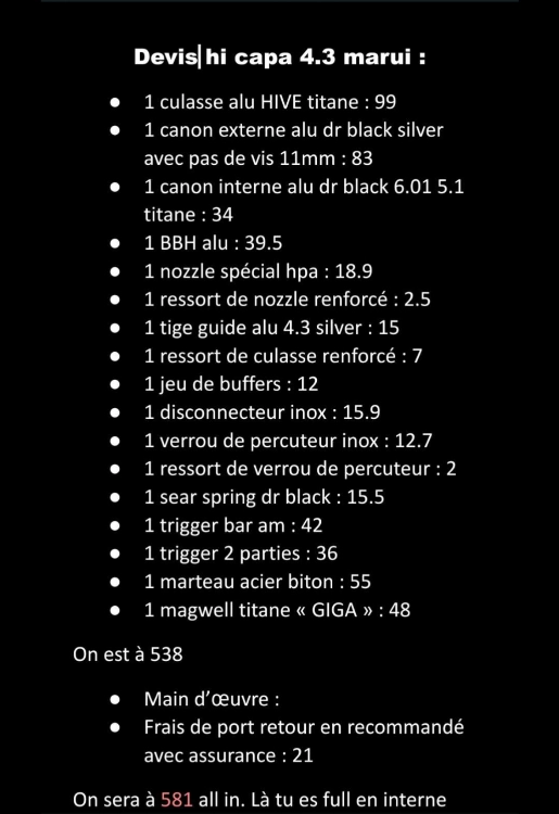 Bonjour bonsoir, je mets en vente mon Hi.capa 4.3 de chez art custom privé pour plus de renseignements (pour 500€ je peux rajouter une culasse de chez Vinci introuvable pour le moment plus adaptateur puls)