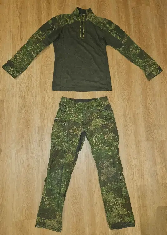 À vendre emsemble 3 pièces pantalon de combat t-shirt de combat et veste de combat camo pencott wildwood idéal pour se cacher en milieu boisé voir photo.