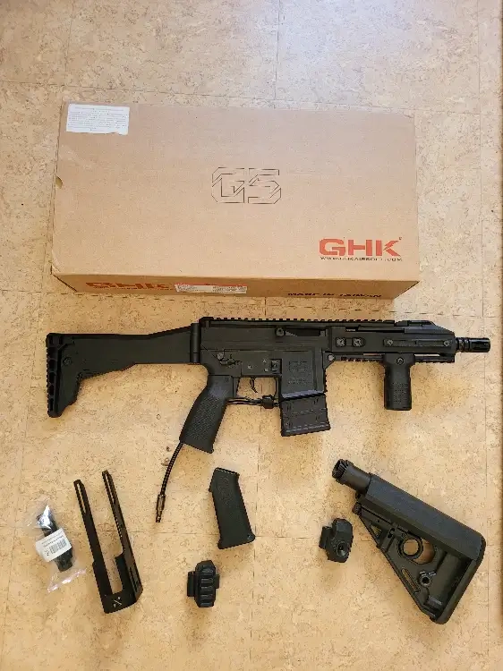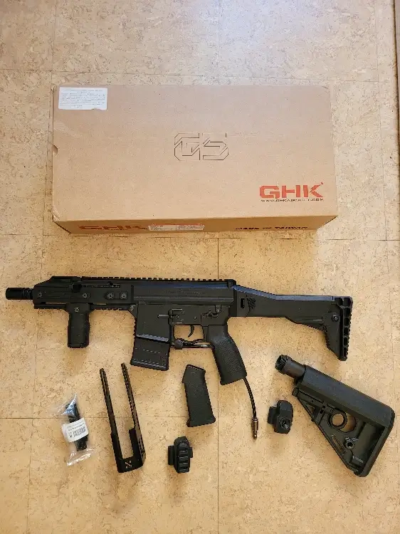 bonjour je me sépare de mon GHK G5 équipé avec un kit airtac a cartouche de pompe vendu avec tout se qui ya sur les photos merci