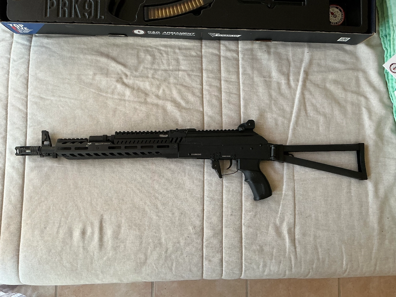 PRK9 longue avec crosse repliable , comme neuve , mosfet et ETU . Qualité G&G dans son emballage d origine .