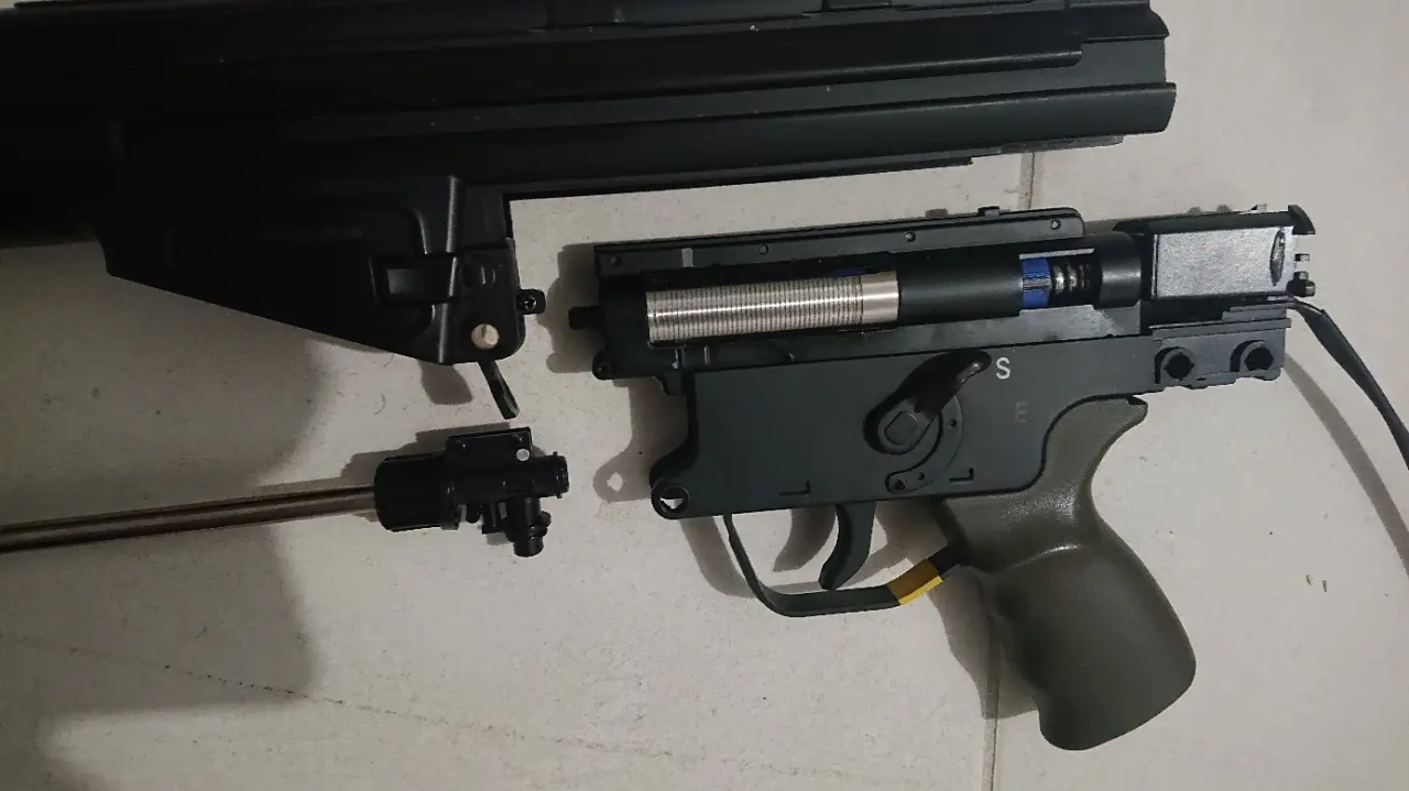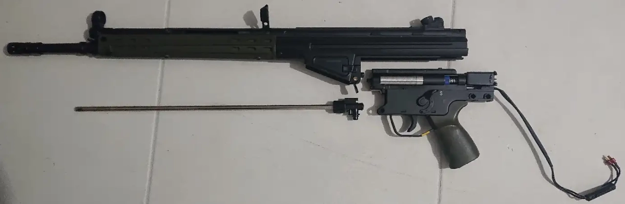 Je ne le joue plus, et je suis passé à autre chose : je le revend. Mon G3 Jing Gong, upgradé par l’ancien propriétaire. Je ne connais plus le détail de l’intérieur, mais je suis sûr que la pneumatique est nickel car la régularité impeccable à 2/3 fps de marge à chaque tir. Fonctionne parfaitement avec une 11.1.v. Bonne portée alors que je le jouais avec de la 0.28 avant que je ne comprenne qu’il fallait plus lours 🙂 Vendu avec 2 mid-caps et 2 hi-caps dont un légèrement ébréché mais uqi tient quand même.