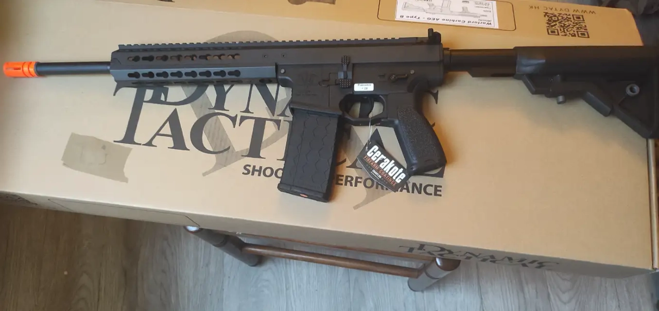 Les séries DYTAC Warlord M4 se caractérisent par l'emploi d'un upper monolithique Keymod en aluminium du plus bel effet, la partie basse ou "lower" est réalisée en ABS haute résistance. Coté interne on retrouve une gearbox renforcée sur bearings 8mm et un canon 6.01mm de série.