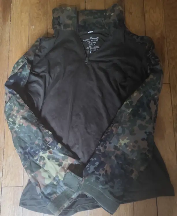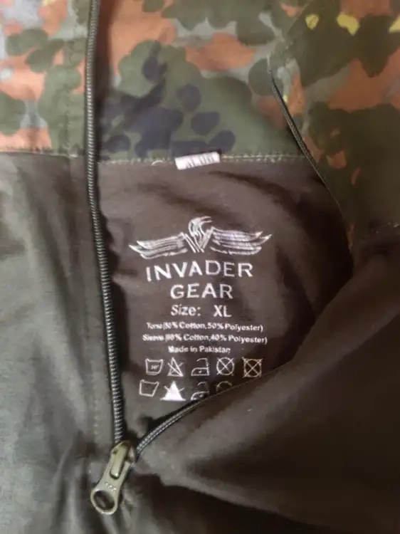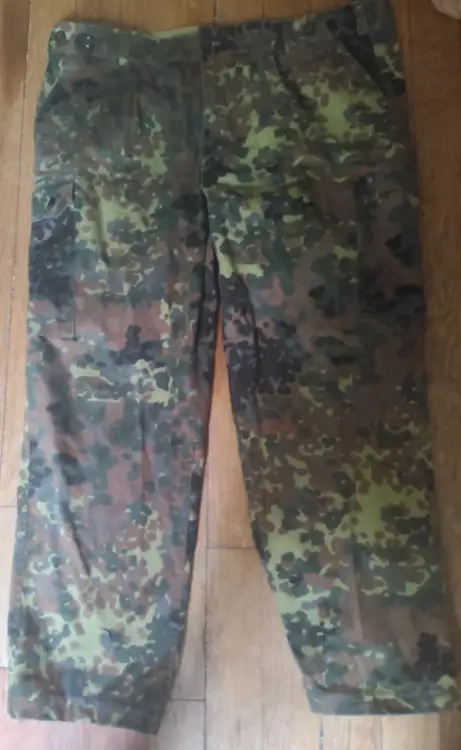 Pantalon sans marque (venant d'un surplus) taille 50 et t-shirt invader gear en xl Camo flecktarn.
