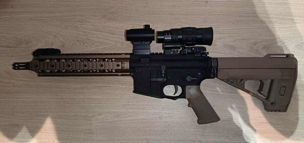 Il est fourni avec la réplique un viseur red dot micro t1, un magnifier, une paire de mire mécaniques, et autant de chargeur que vous le souhaitez ! (j'en ai une certaine quantité)