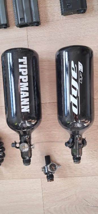 Il y a également deux bouteilles grandes capacités HPA avec un détendeurs (neuf) d'avance. Avec 4 flexibles complets (a verifier).