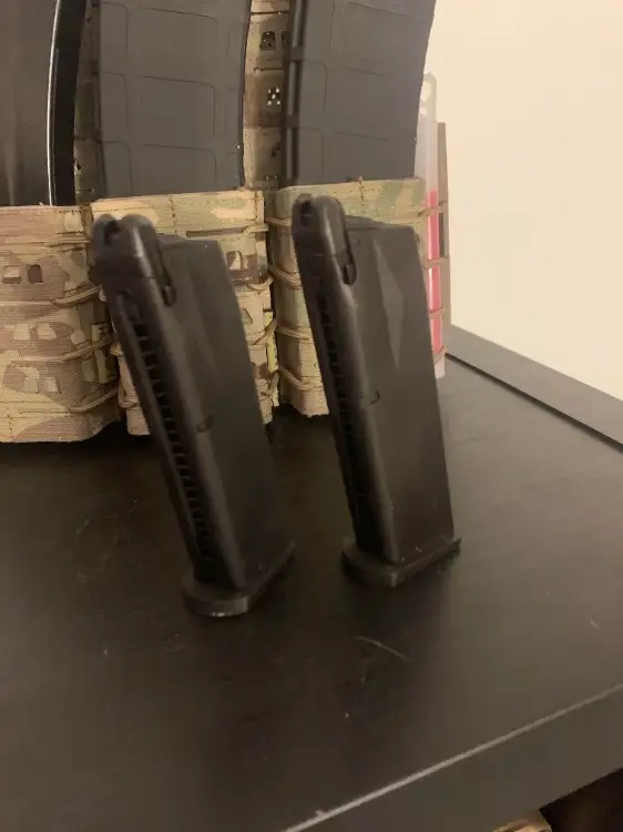 Vends 2x Chargeur Gaz 24 billes pour Beretta M9 UMAREX, neufs, jamais utilisés. Suite à une erreur de commande, je les revends. Les chargeurs sont adaptés pour les répliques de poing Beretta M9 de la marque Umarex, capacité 24 billes, tout métal, couleur noire.