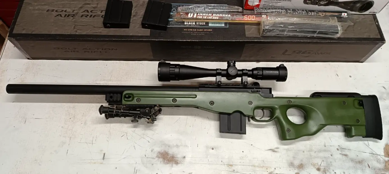 vendu dans sa boîte avec 3 chargeur 40bb, ses pièces d'origines, extension rail picatiny