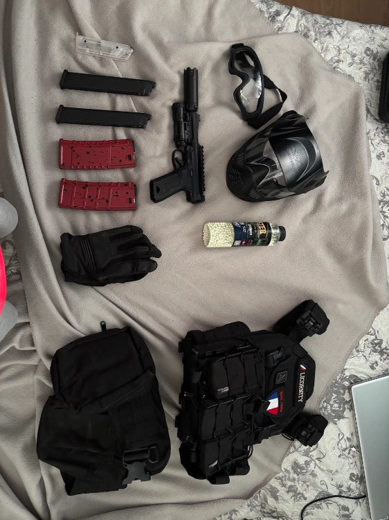 Bonjour, je vends mon ensemble complet d’airsoft avec gilet casque gants, ceinturons ,billes traçante, b&b loder , talkie-walkie avec oreillette, deux chargeurs m4, et mon aap01