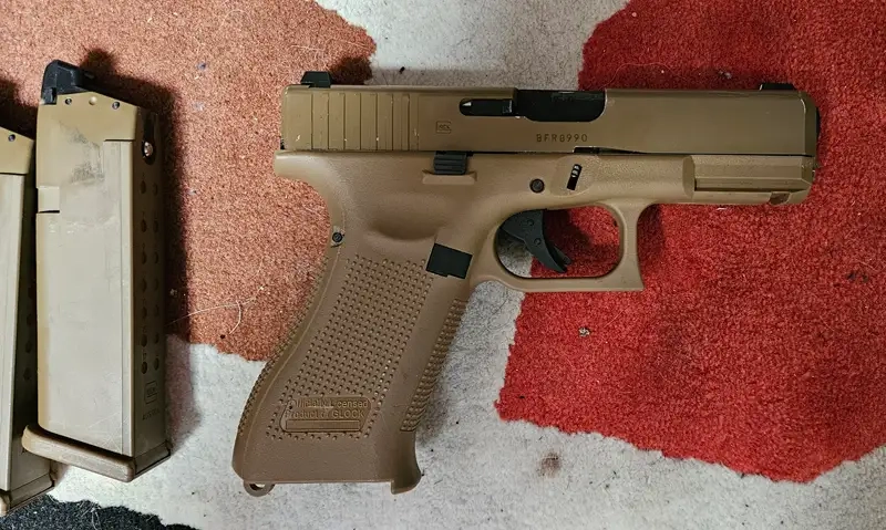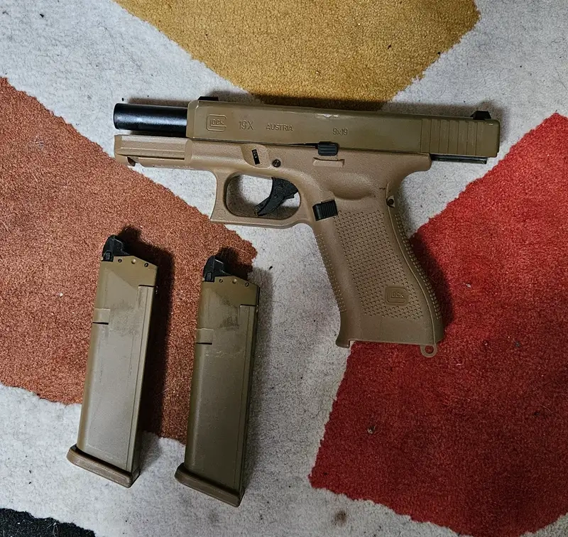 Excellente réplique de VFC, vendu avec un chargeur supplémentaire parfaitement fonctionnel, son seul défaut est la peinture de la culasse qui n'a pas bien supporter le holster, comme vu sur la première photo.