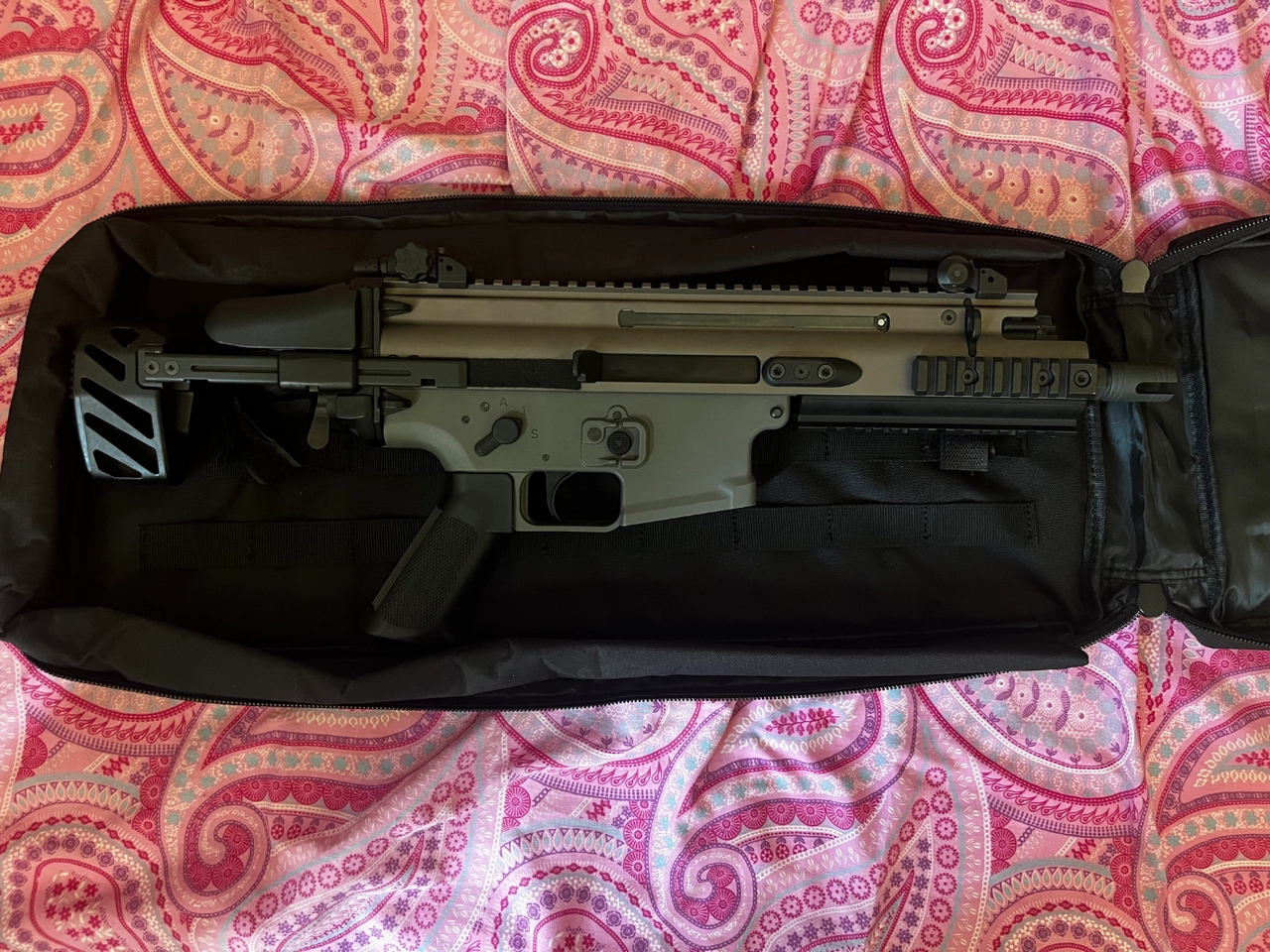 Je vends une réplique Airsoft ambidextre haut de gamme sous license (réaliste avec marquages d’origine FN Herstal) EBBR BOLT FN SCAR-SC (modèle compact) avec système blowback BRSS (simulation de recul lors du tir très performant), en finition grise tactique, dans un état esthétique quasi-neuf (jamais utilisée en jeu). Principalement conçue pour les parties en espaces confinés CQB (Close Quarters Battle), sa maniabilité exceptionnelle et son petit gabarit en font une réplique très polyvalente !