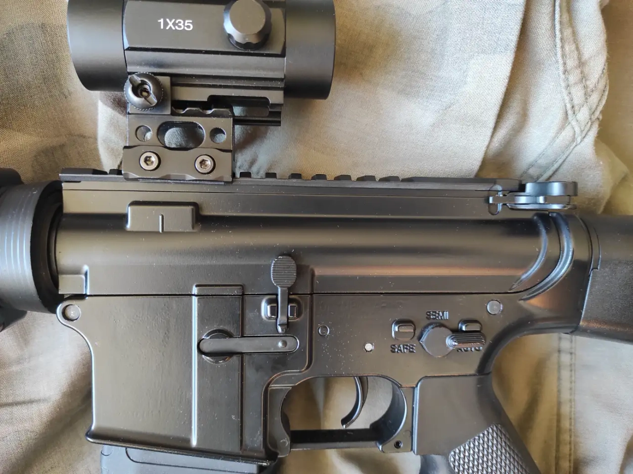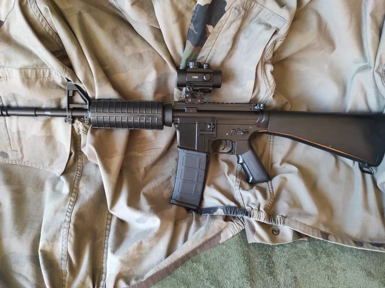 Sera livrée avec en red dot et un carry handle "poignet type M16"