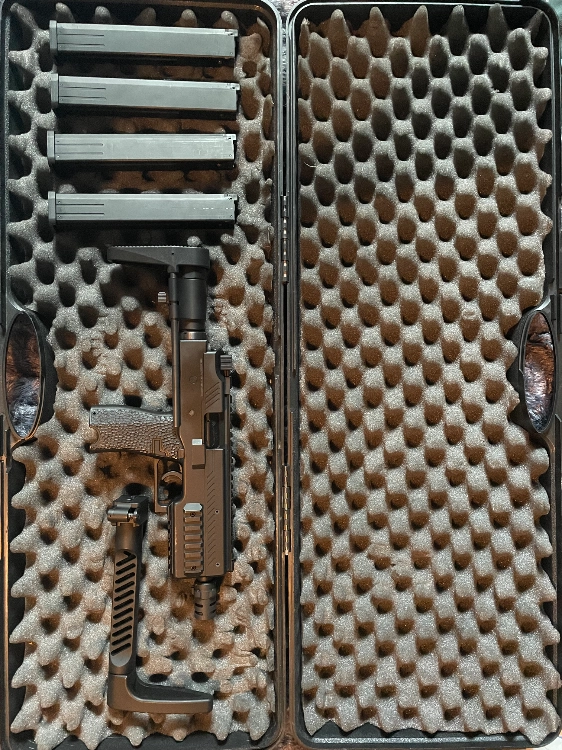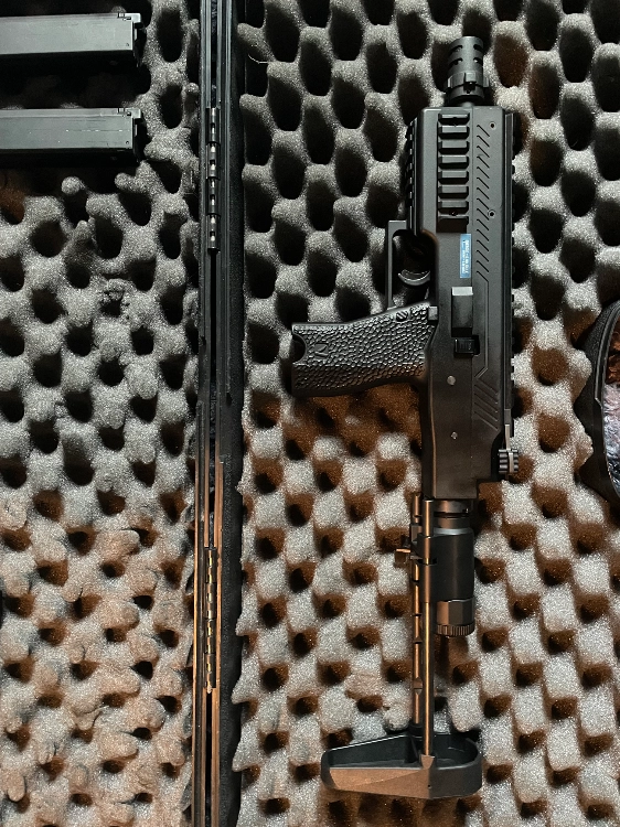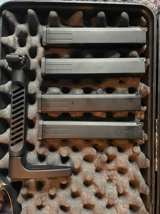 Elle est vendu avec 4 chargeurs sans fuites, la crosse d’origine et une crosse type pdw, un nozzle de rechange etc tous ce qu’il y a dans la boîte d’origine