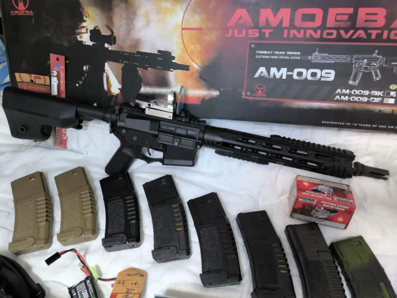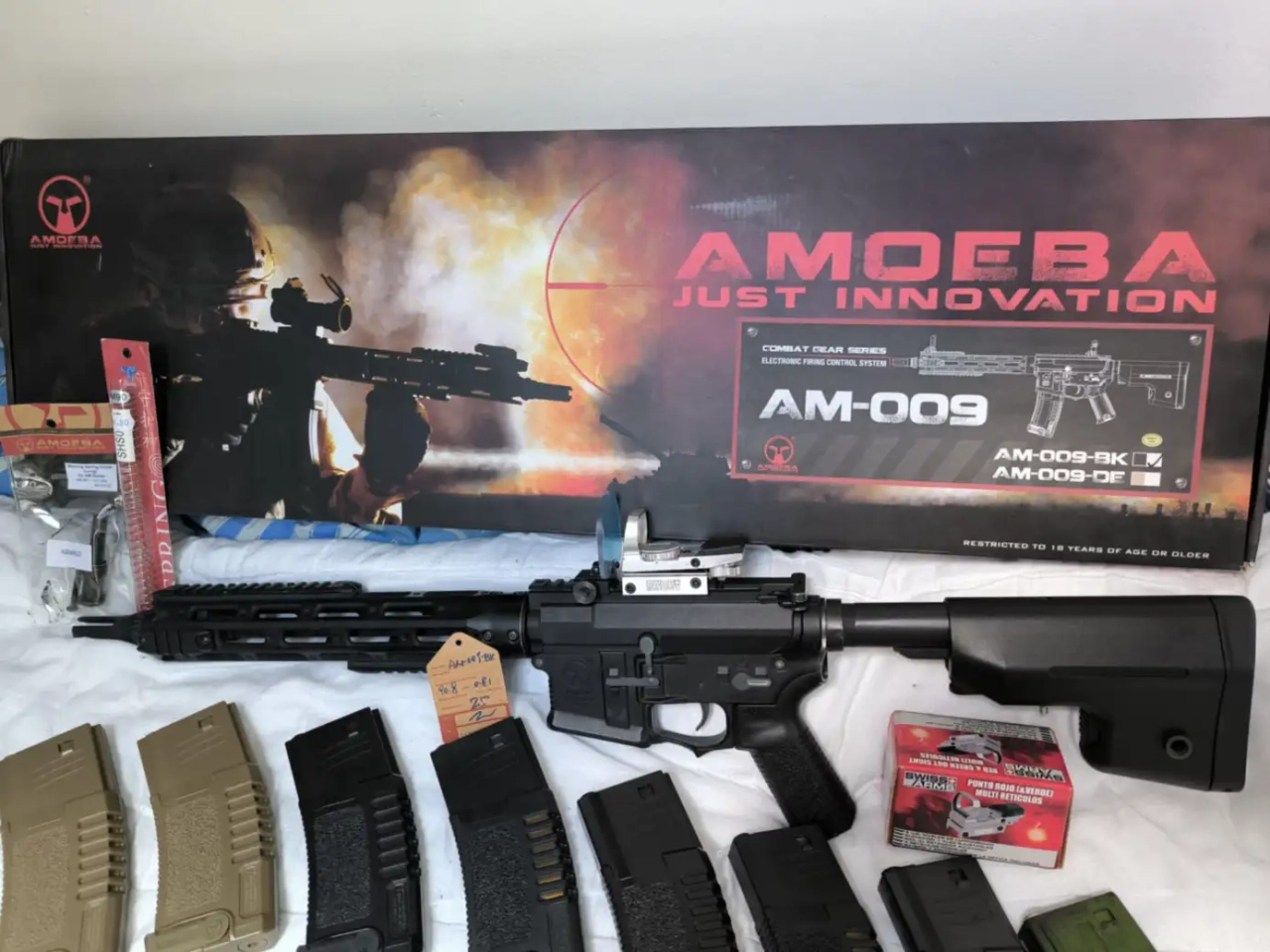 Vend réplique Amoeba AM 009 avec intérieur carte neuve, ressort M90, spring guide sur roulement ( pièces origines fournies). 1 joule.