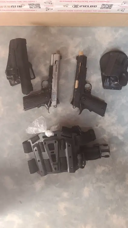 Holster gaucher rétention actifs avec passant ceinture et plaque de cuisse