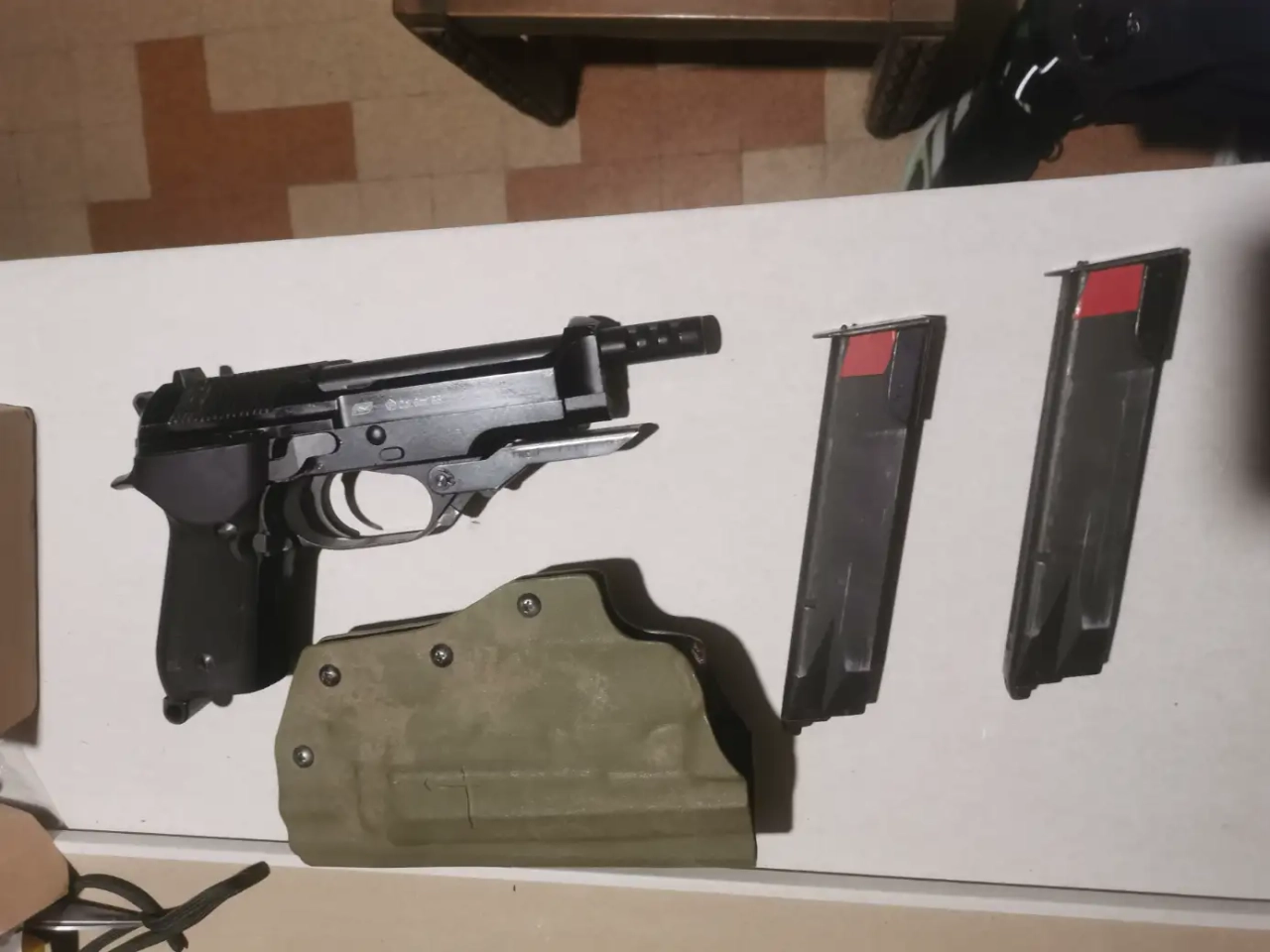M93R ASG(c'est le KWA vendu sous licence ASG en Europe) nozzle et ressort neuf + 2 mag + holster en kydex 230.
