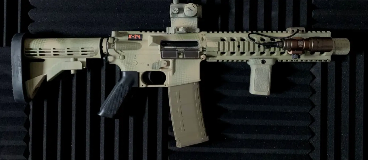 Vends M4 king arms sous licence smith & wesson (M&P 15) avec marquage. Interne totalement refait et externe légèrement modifié avec paintjob maison. Le marquage X-24 peut-être retiré sans retirer la peinture (il est sur un strap).