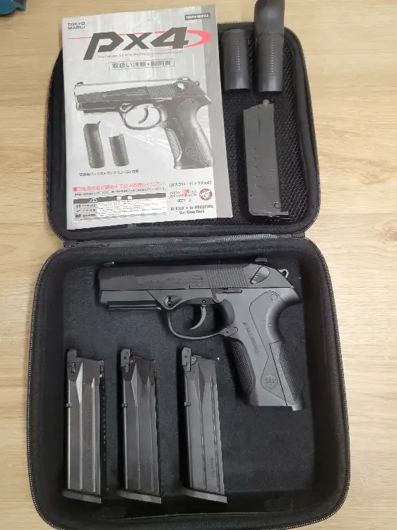 Pistolet PX4 de chez Marui en excellent état, 3 chargeurs, les 3 grips fournis, 1 loader et 1 sacoche en tissu.