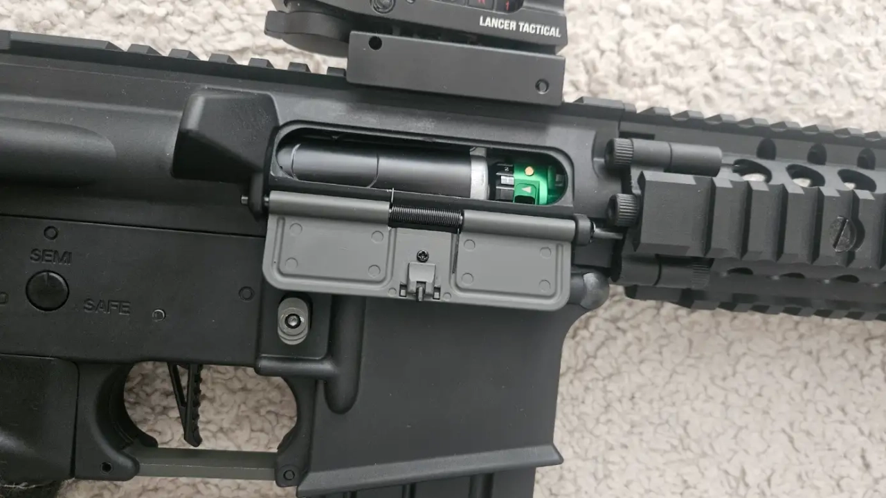 Le corps est fabriqué en nylon renforcé de fibres, offrant résistance mécanique et finition mate réaliste. La détente, la garde de détente, la poignée de chargement, le canon externe et les fixations QD sont en métal, augmentant la durabilité et le réalisme. L'ensemble est solide, bien ajusté et sans jeu, garantissant un confort optimal pendant le jeu.