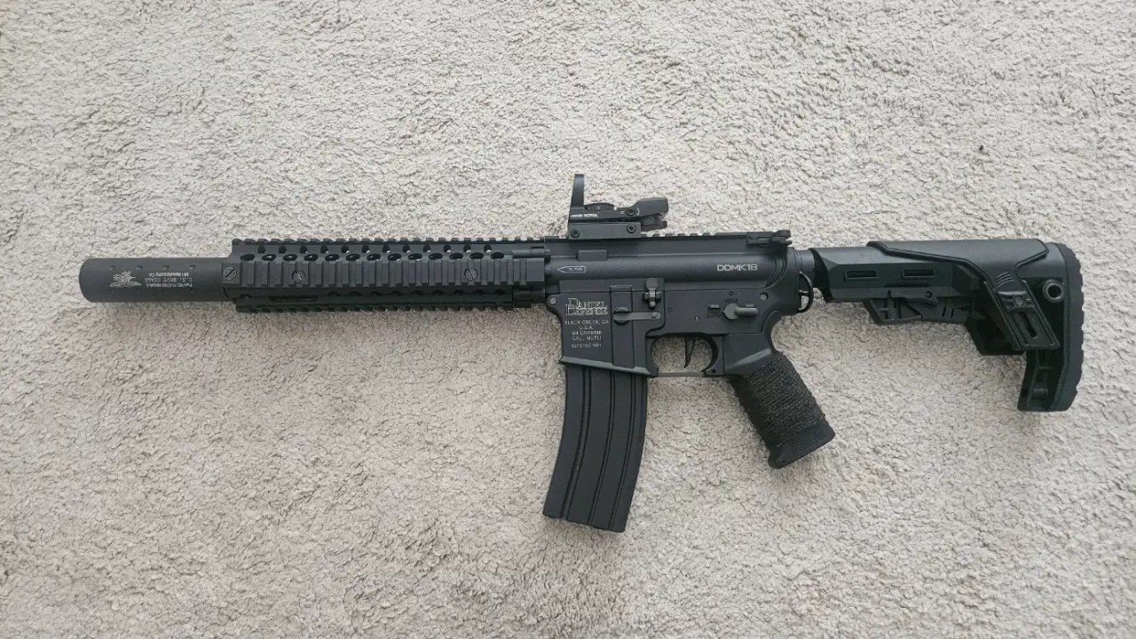 Le DD MK18 mesure 71 cm, idéal pour les espaces restreints et les affrontements dynamiques. La réplique pèse 2,2 kg, ce qui améliore la maniabilité. La crosse télescopique réglable sur 6 positions permet d'adapter la longueur a la morphologie du joueur. Le compartiment de la crosse accepte des batteries jusqu'à 3000 mAh, prolongeant le temps de jeu.