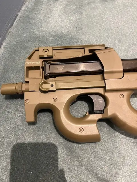 Je vends ma réplique P90 Cybergun sous licence FN Herstal, en très bon état, utilisée quelques parties seulement.