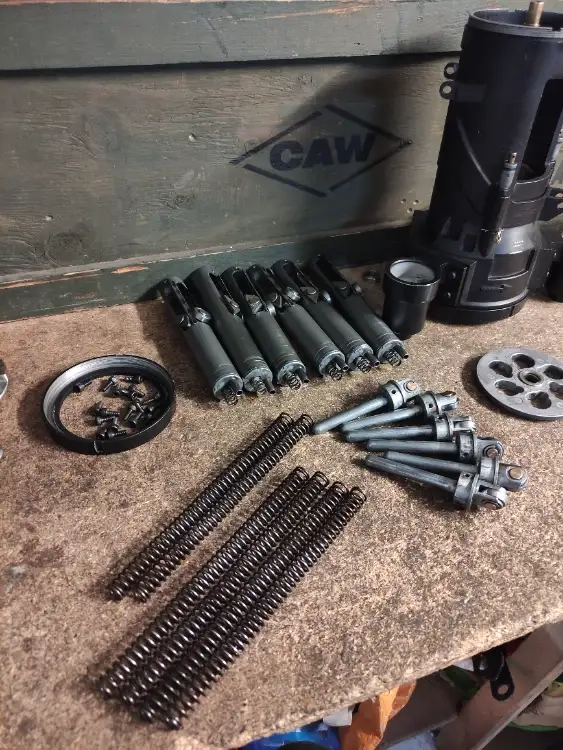 L'interne ( les cylindres on été retiré ) les canons tournent encore et il faut juste les deux pièces pour la refaire marché a 100%