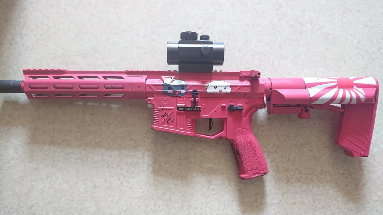 La réplique, un point rouge, les boîtes du titan, 5 chargeurs amoeba et 4 pmag ares (xxl) ainsi que la batterie 11.1V/1100mAh et une housse de transport