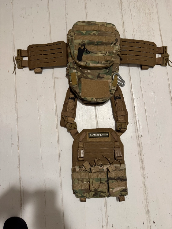 Je vend ce gilet tactique coyote invader gear avec accessoires multicam.