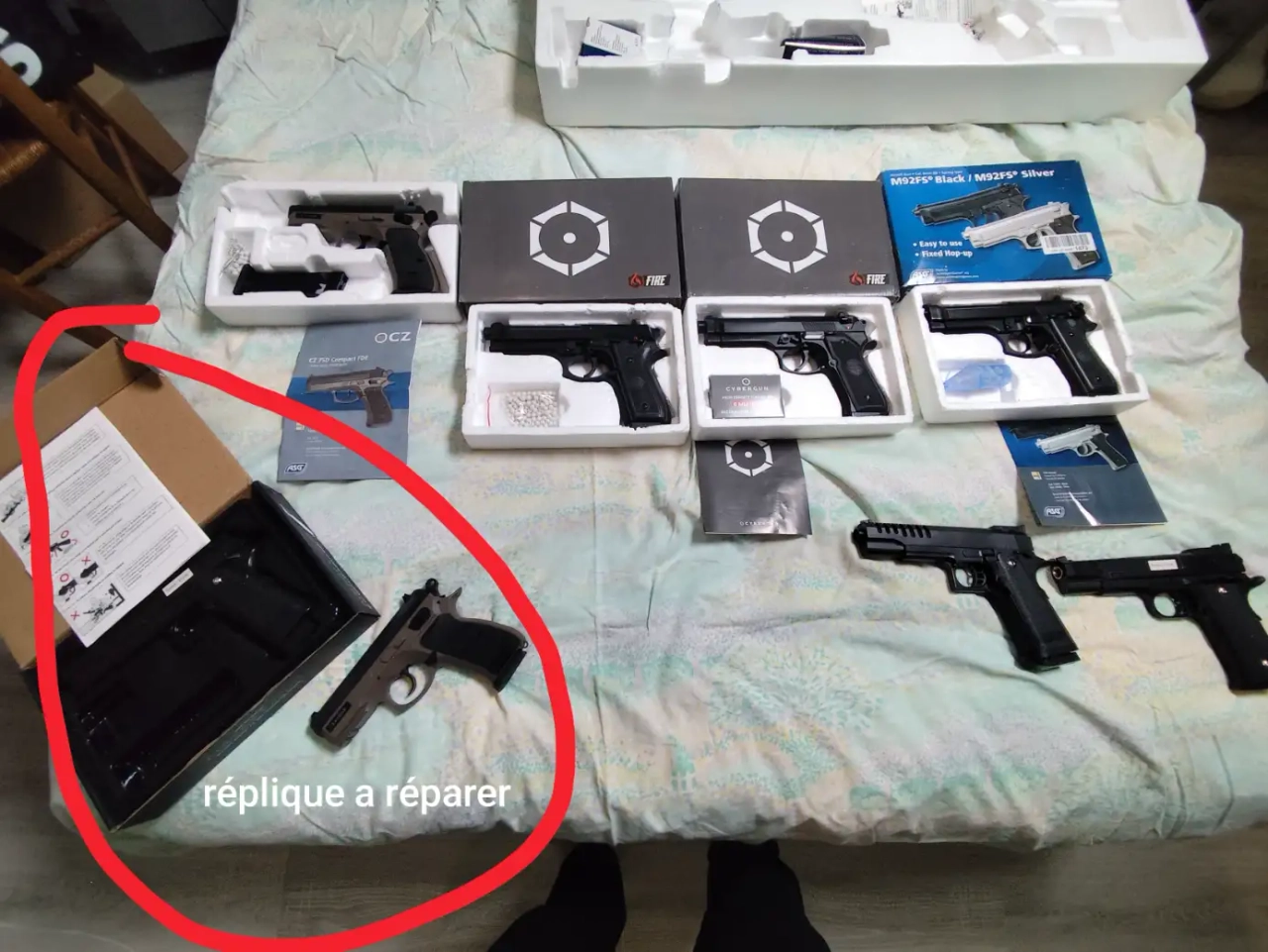 Je mets mes airsoft en vente car arrêt d'activité sur les huit répliques il y en a deux à réparer sinon le reste fonctionne très bien toutes les répliques qui fonctionnent non seulement trois parties voir 4 à son actif très bien pour commencer en tant que débutant pas d'entretien à faire. Les répliques peuvent tirer jusqu'à environ 10 m avait du 0,25 g en bille