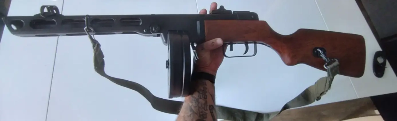 Réplique airsoft AEG du pistolet mitrailleur Soviétique PPSH 41 utilisé lors de la seconde guerre mondiale de la marque ARES