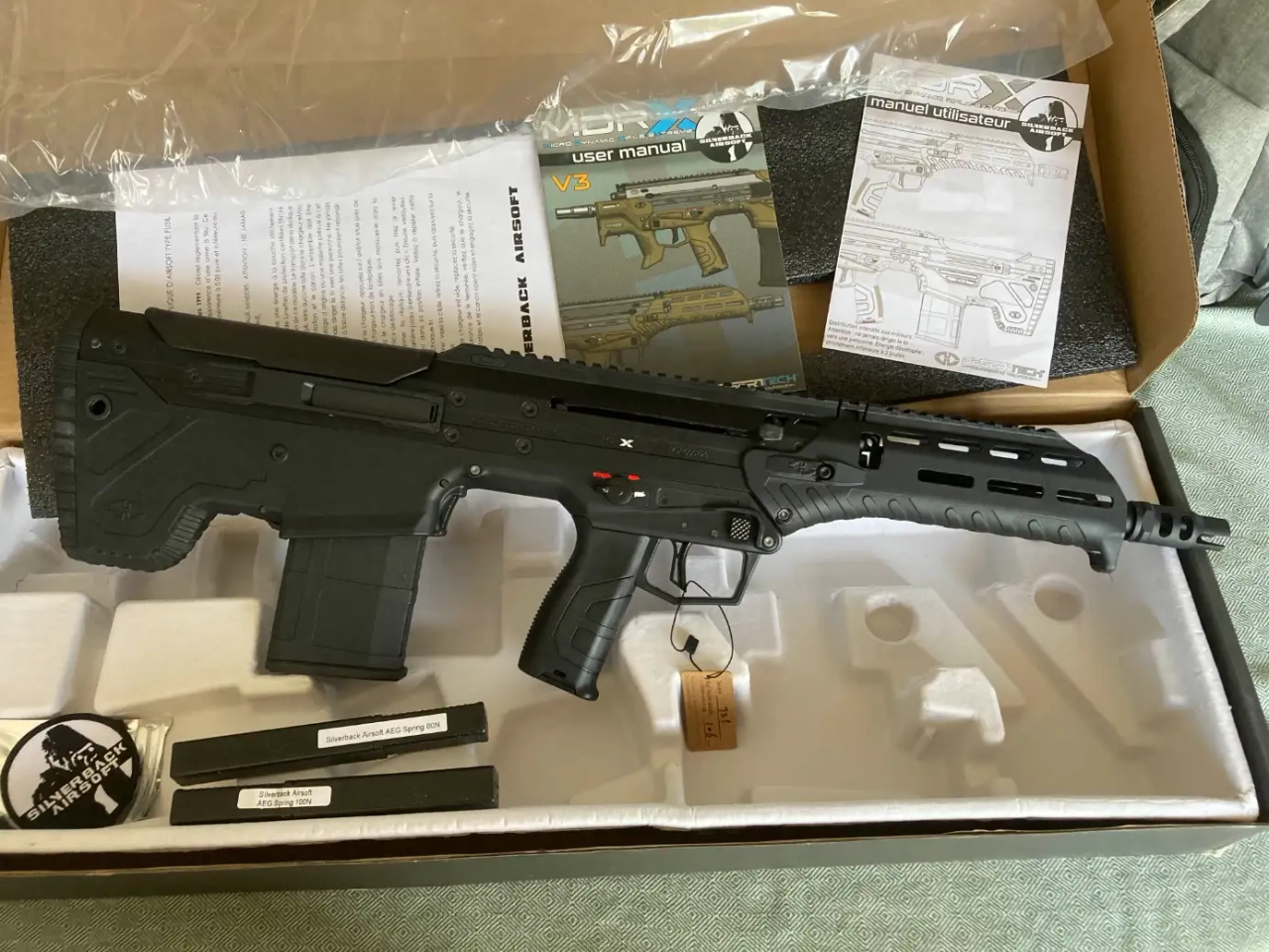 Vend MDRX Silverback MDR-X V3 AEG état NEUF, utilisé uniquement pour un court métrage, disponibles pour toutes demandes, photos/vidéos.