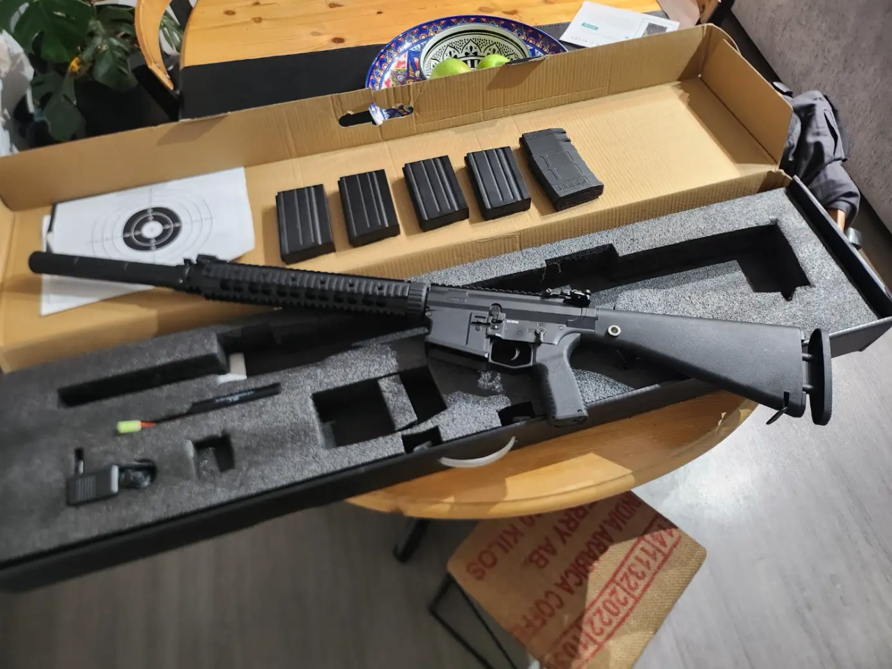 Bonjour, je vends un sr25 platinium cyma full metal. Il est neuf et n'a jamais vu le terrain. Vendu dans sa boîte ( boîte abimee) avec 5 chargeurs neuf. Aucune modif n'a été faite sur la replique, elle est absolument neuve. Ambidextre, bolt catch fonctionnel, numero de série.