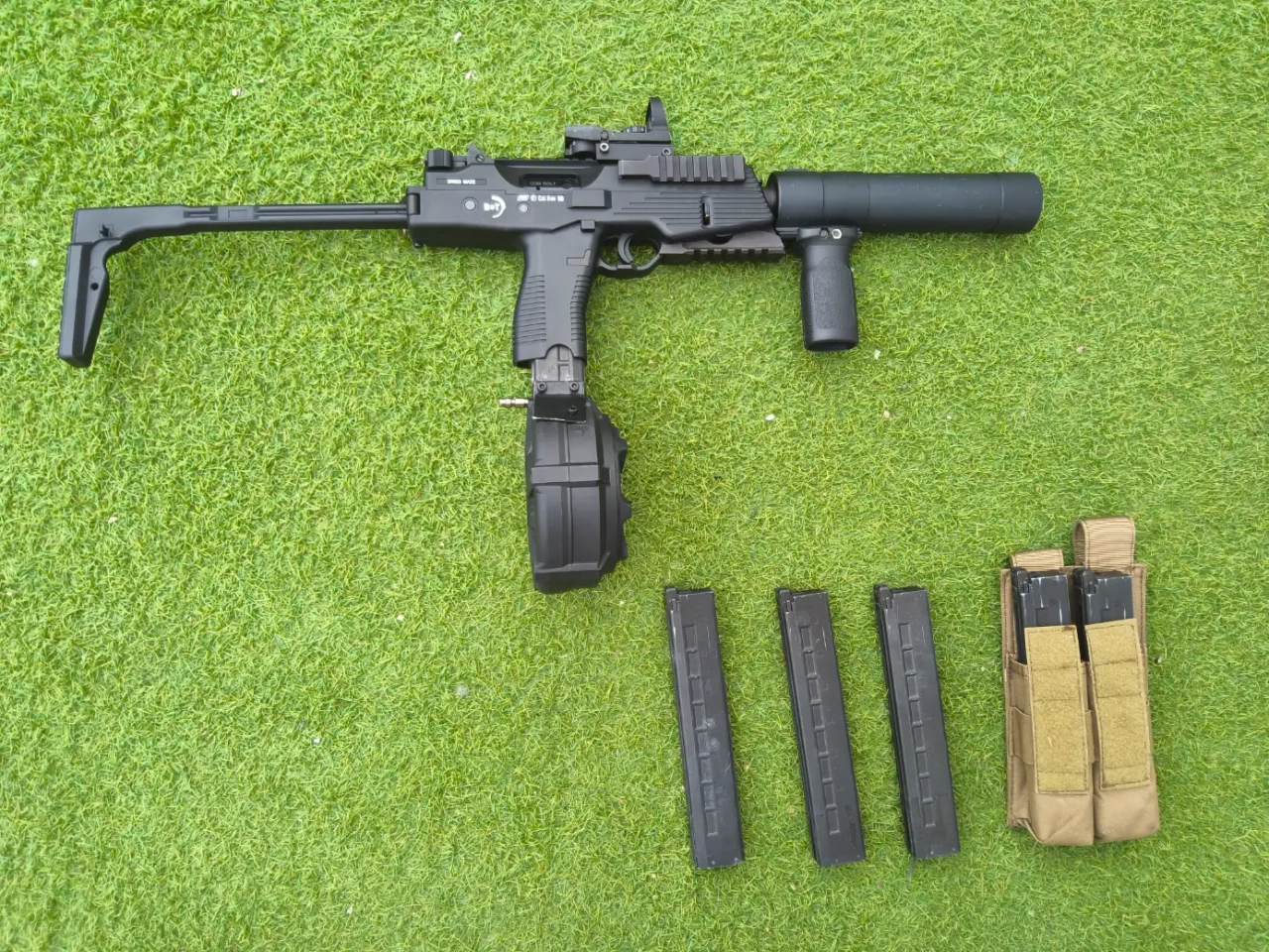 Vend 1 mp9 ggb avec sa poignée sa red dot + son drame hpa et 5 chargeurs et porte chargeur