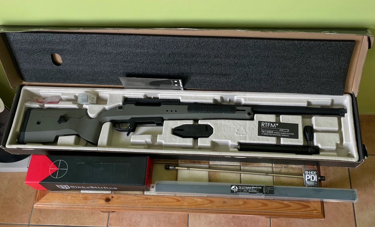 Je le vends avec toutes les pièces d’origine, un chargeur grande cap et deux classiques ainsi qu’une lunette Nikko Stirling mountmaster x3-x9