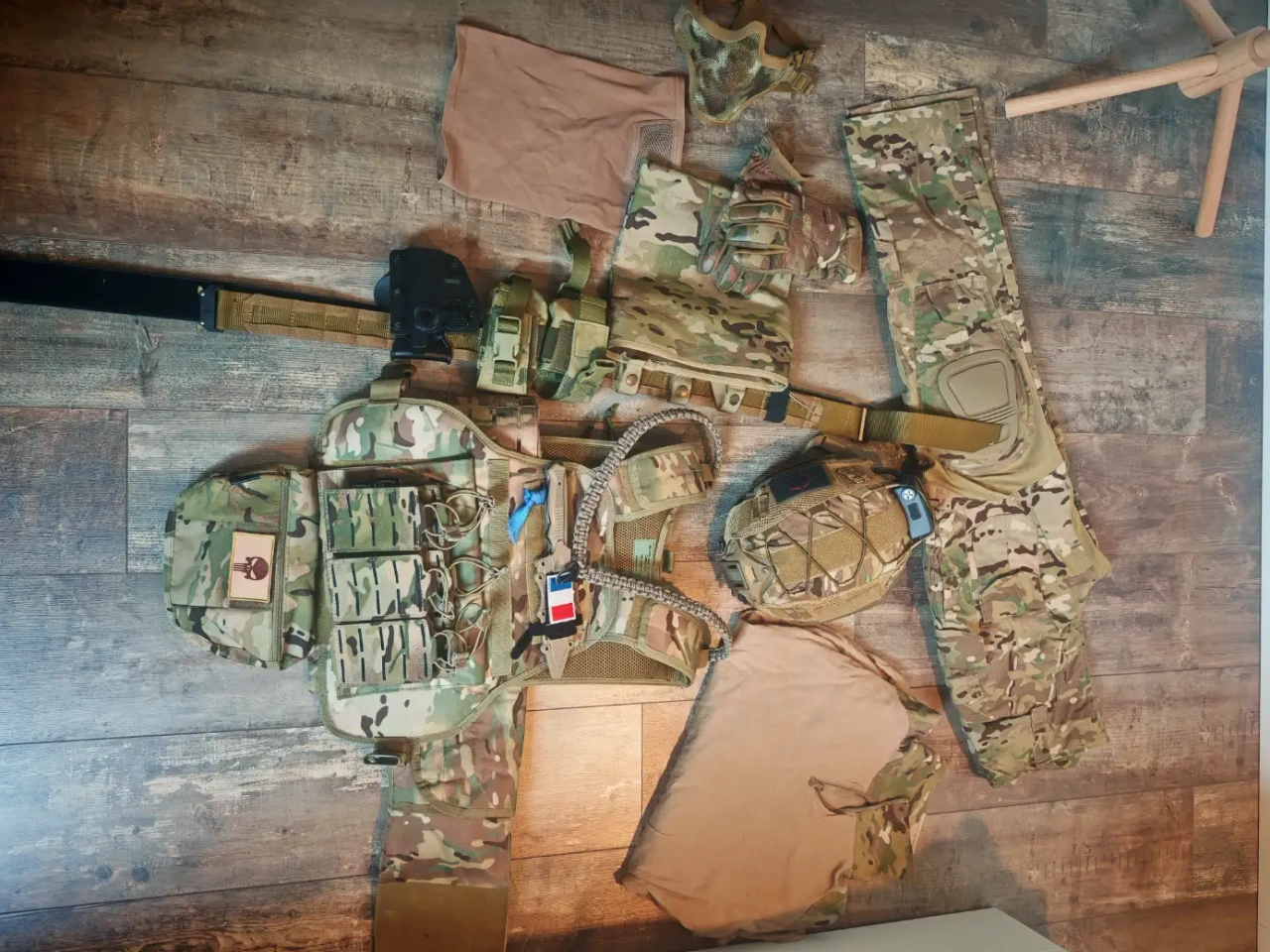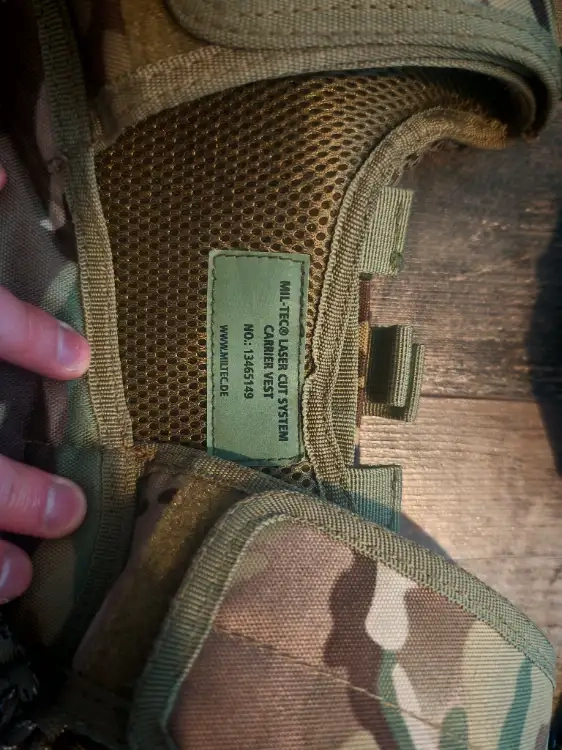 Gilet tactique équipé d'un sac à dos, d'un porte chargeur (x6) d'une banane et d'une sangle un point.