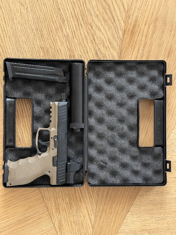 Je vends ma réplique de poing HK VP9 Tactical à gaz, sous licence officielle H&K / UMAREX, en excellent état de fonctionnement, avec les accessoires suivants :