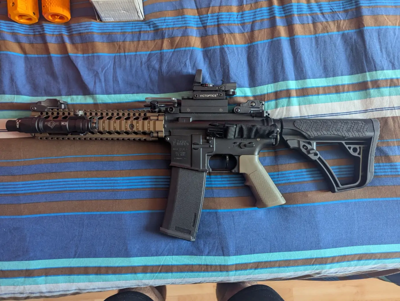 2 chargeur m4,2 chargeur pts, lampe torche, traceur de billes,2 batterie + un chargeur.