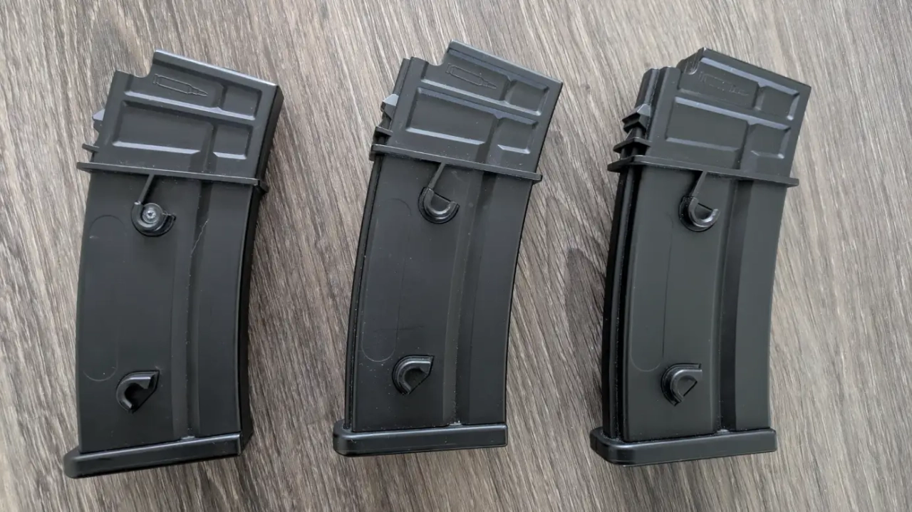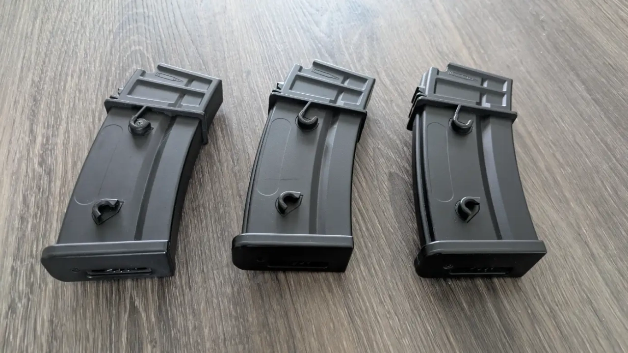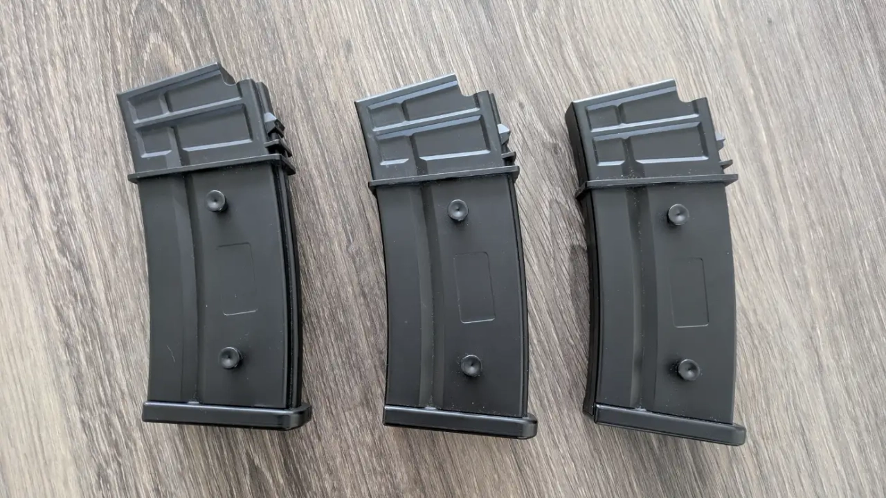 Je vends mes 3 chargeurs Hip-Cap G36 d'une contenance chacun de 450 billes de la marque Cyma