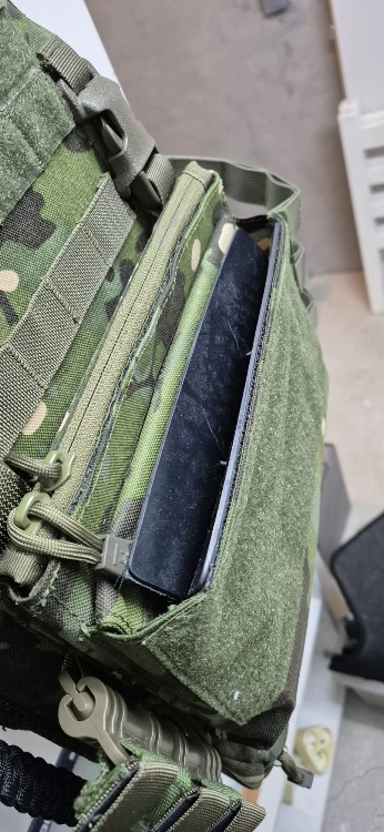 Le porte plaque est vendu avec la poche kangourou équipée d’un insert en kydex, la poche « à gras » 😅, une plaque pour passer en molle en façade et sur les latéraux.