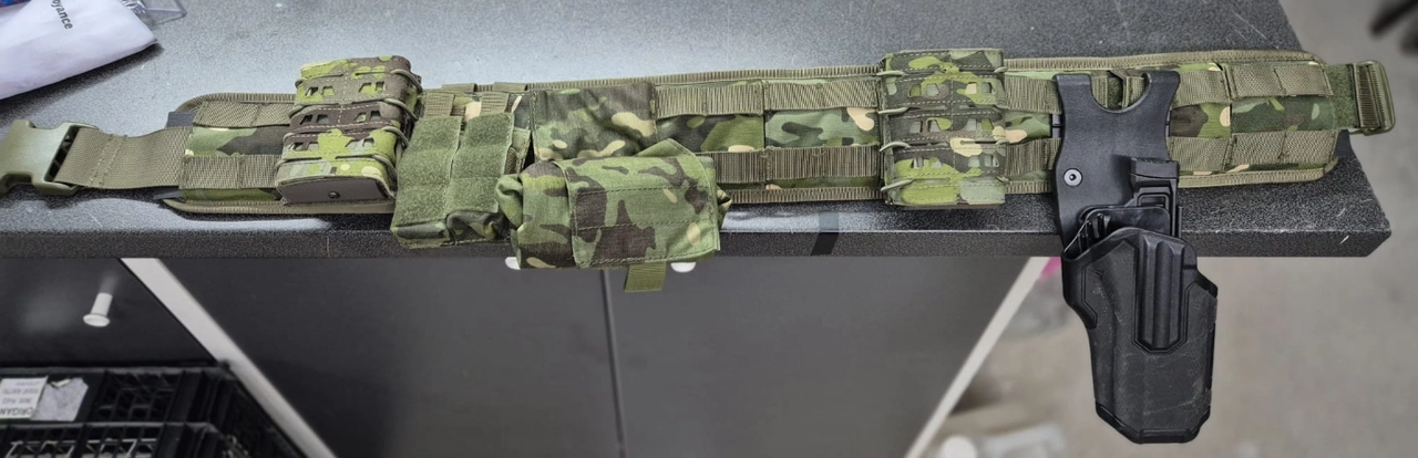 Je mets en vente mon porte plaque Multicam Tropic et la ceinture tactique.