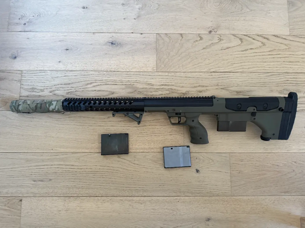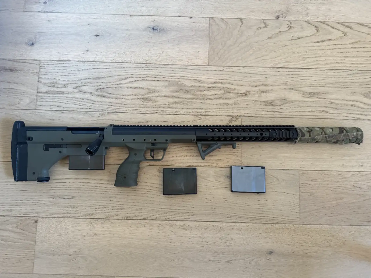 Vend Silverback SRS A1 22" couleur vert olive Full Upgrade, avec 3 chargeurs, le manuel, et en plus des pièces d'upgrade la chambre hop-up d'origine, un flat hop-up silverback 70° avec son nub, un piston léger, 4 ressorts de différentes puissances et de la graisse Silverback.