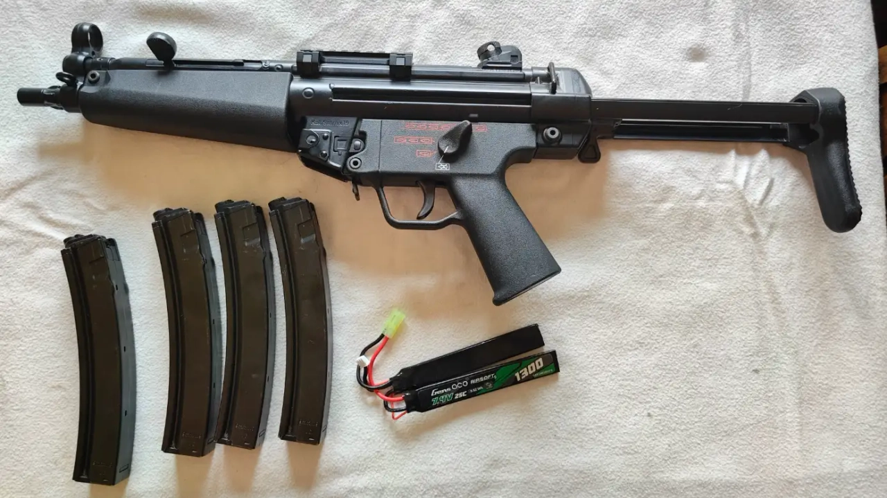 Je la vends avec 4 chargeurs midcap "à capacité modulable" 30/72 billes, rail court pour monter une optique ainsi que la batterie ( Gens Ace 7.4v lipo 1300mah 25c )