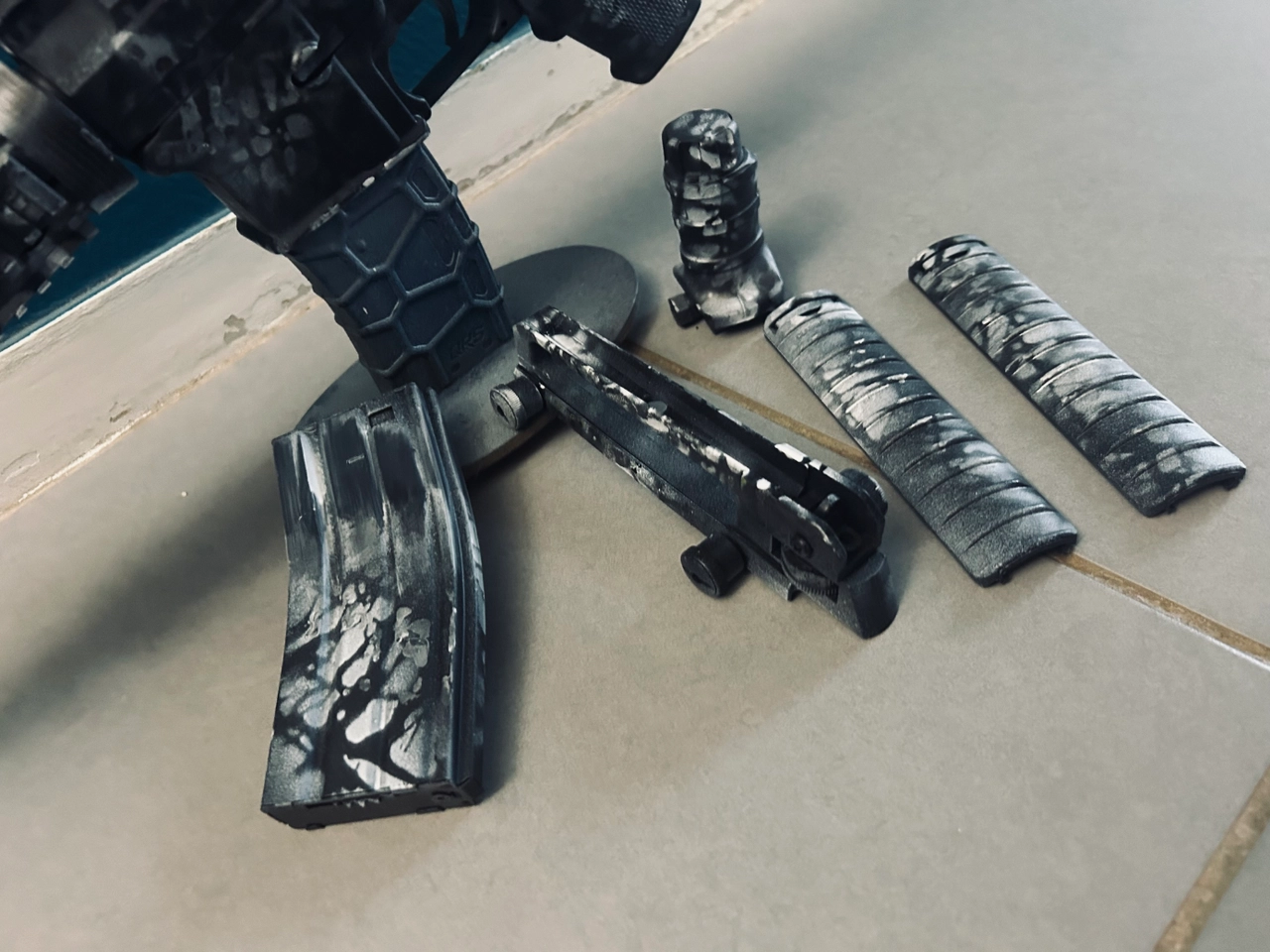 Le forfait comprend : Pistolet, chargeur, poignée verticale, couvercles de rail, manuel