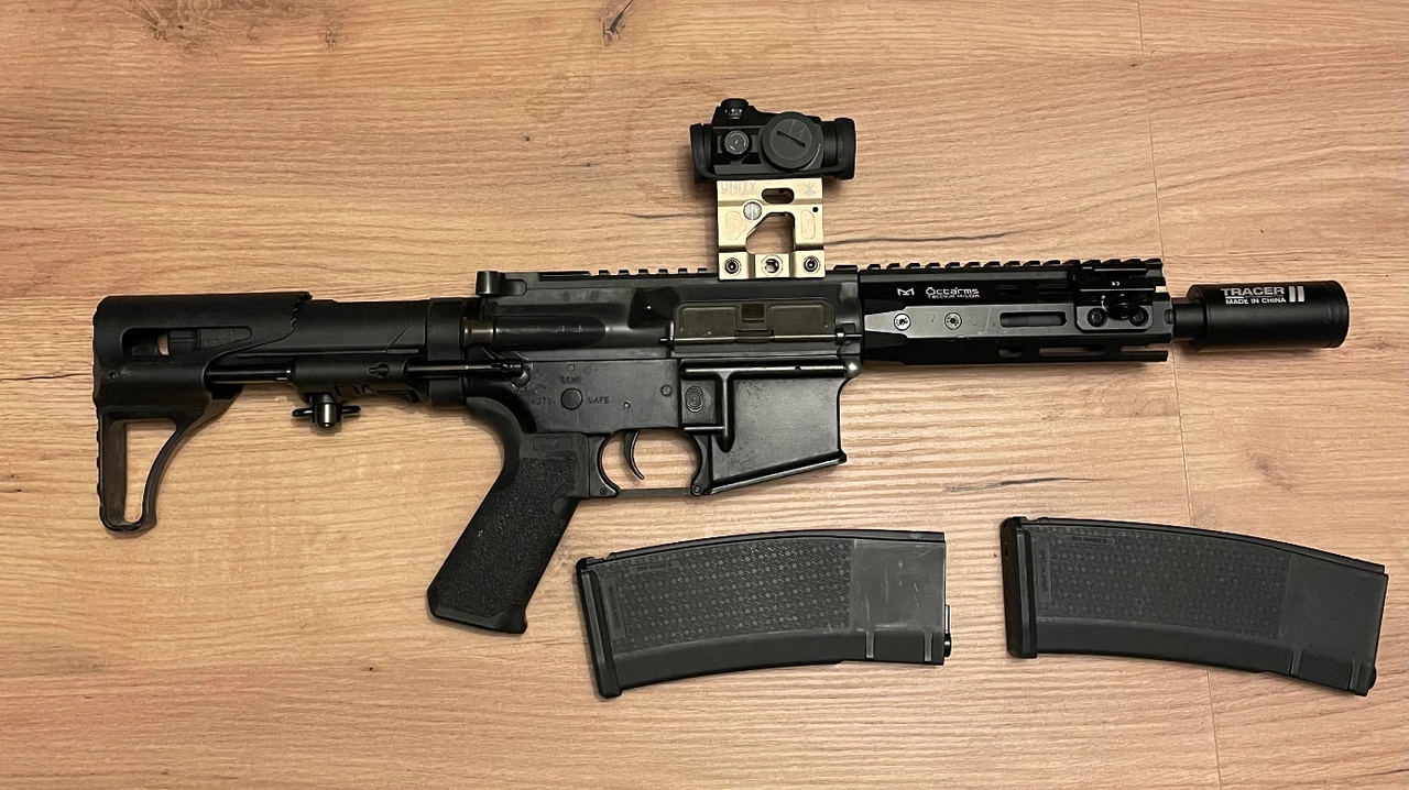 Vendu sans l’optique ni le support unity par contre ni le support pour lampe olight