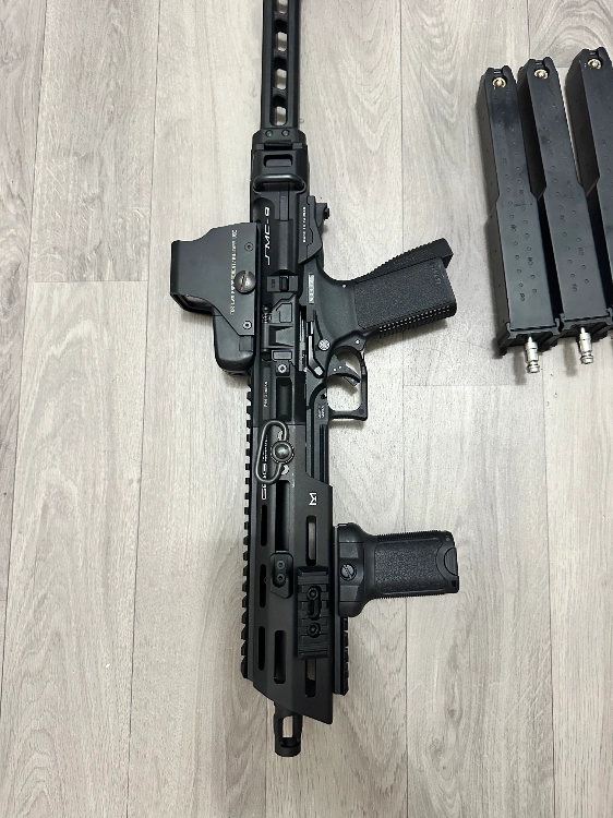 Je l’ai acheté il y a environ un mois n’a jamais vu le terrain les choses font que je dois arrêter l’airsoft complet du coup malheureusement je n’ai pas pu l’essayer sur le terrain mais très pratique très compact et hyper réactif au niveau du tir. Elle est entièrement neuve j’ai la boîte d’origine je la vends avec deux chargeurs supplémentaires que j’ai acheté d’occasion avec les lèvres cassées Mais je n’ai pas eu le temps de les remplacer donc je les vends comme ça environ six euros pour chaque chargeur.