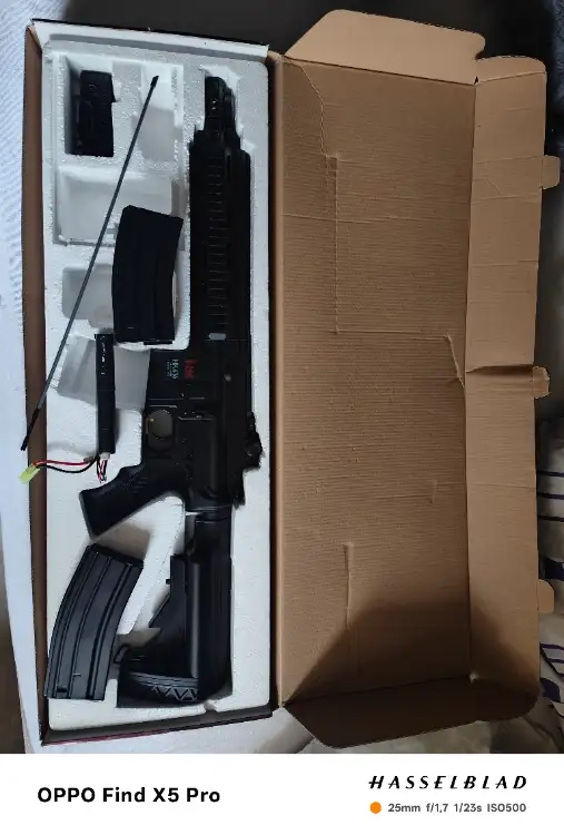 J'ai acheté la réplique à un ami qui ne l'a jamais utilisée et moi non plus sauf quelques tir pour la tester d'où le déballage. J'ai arrêté l'airsoft avant d'avoir pu la tester donc vraiment comme neuve.