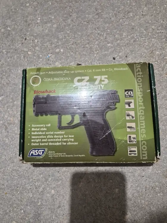 Je vends mon CZ 75 P-07 Duty de la marque ASG, sous licence officielle Česká Zbrojovka. C'est une réplique à culasse mobile (blowback) offrant d'excellentes sensations de tir et une grande précision grâce à son hop-up réglable.