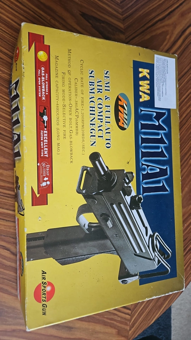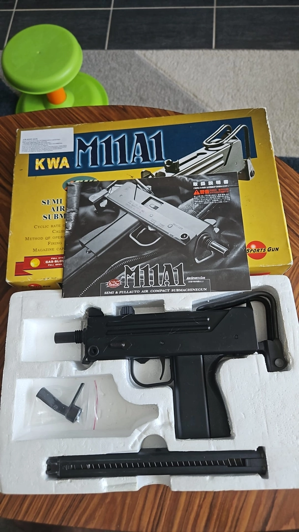 Vends réplique airsoft KWA M11A1, compacte et puissante, capable de tirer en semi-automatique ou en rafale (full auto). Idéale pour le CQB grâce à sa cadence de tir impressionnante.