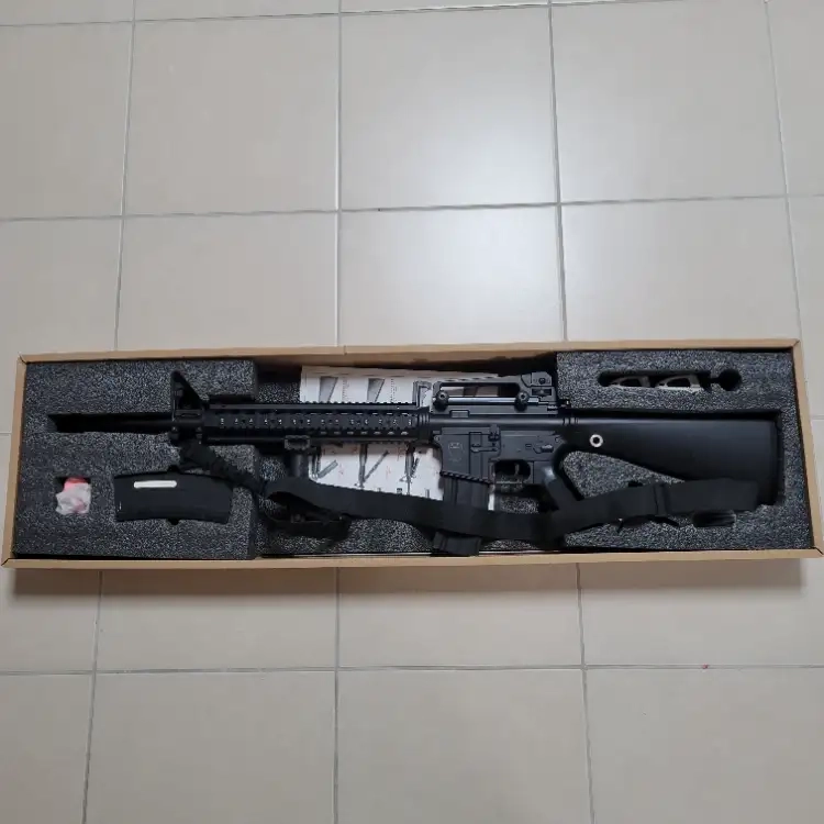Bonjour, je vends ma M16A4 de marque Golden Eagle, acheté sur internet il y a trois ans 200 euros et je m'en suis jamais servi, j'ai déménagé deux fois donc le carton a subit quelque dégâts, mais l'arme est impeccable, équipée d'une poignée, d'un chargeur en métal, deux autres chargeurs en plastique décoratif, ainsi que d'une sangle (pratique pour la transporter elle pèse son poids), full métal sauf pour la poignée de tir et la crosse.