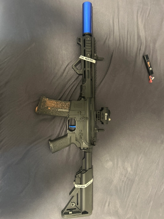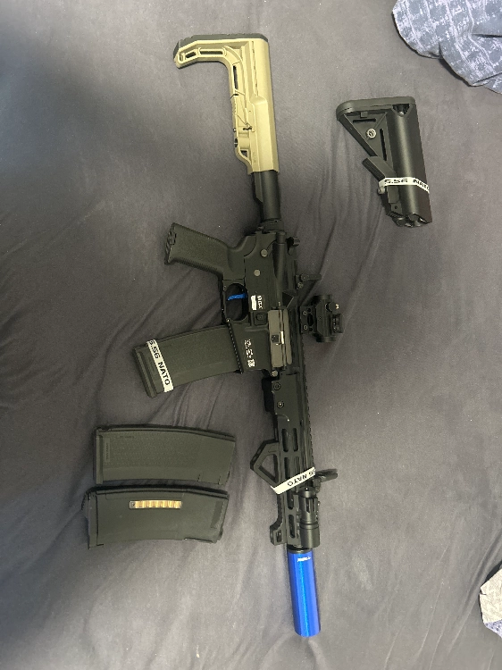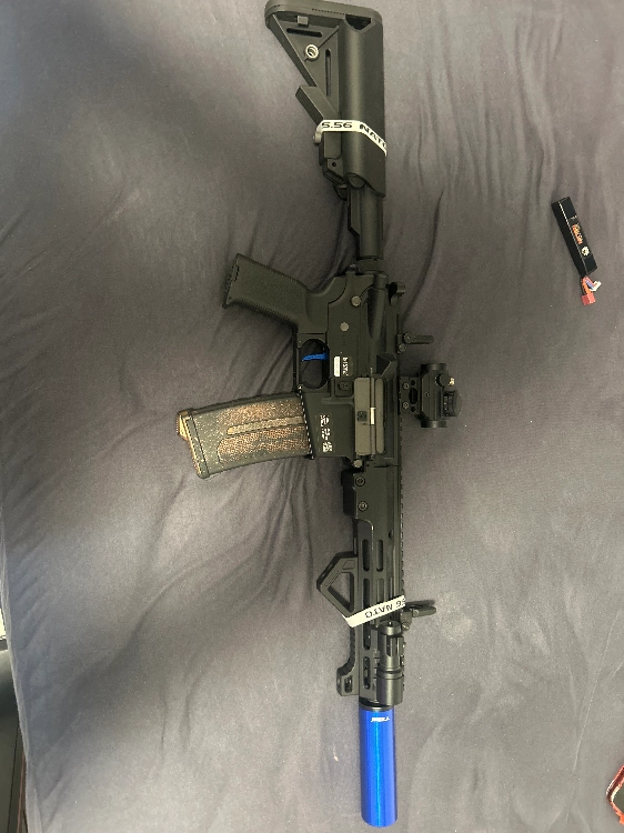 Je la vend avec la lunette le traceur une crosse une lampe plus 3 chargeur une batterie lipo.