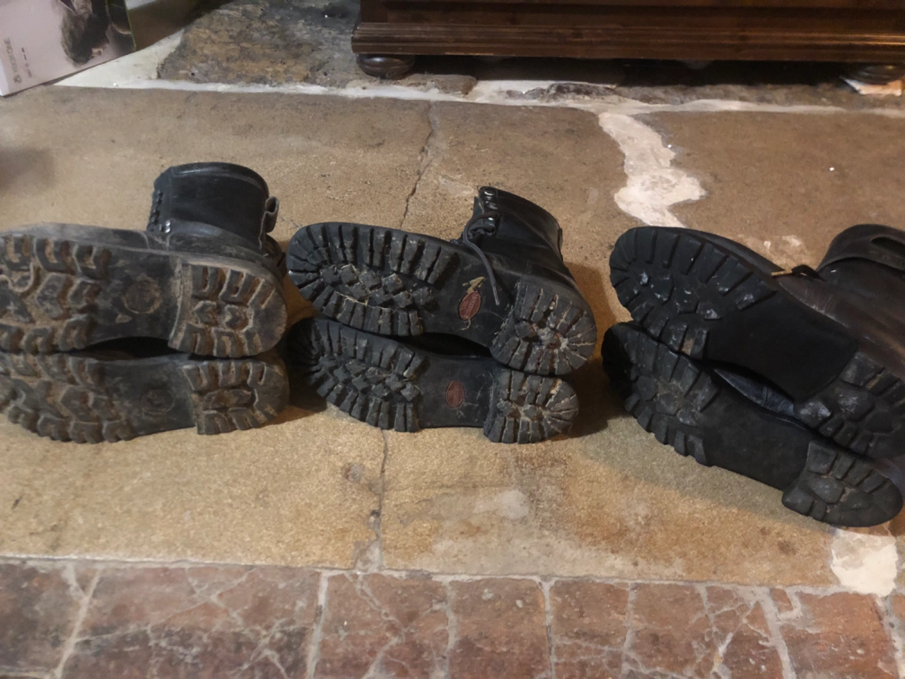 Je cherche a m’en séparer, j’utilisais la paire de gauche qui taille en 44 pour les parties d’airsoft, elle offre un bon maintien et confort mais fait mal en fin de journée si on court.